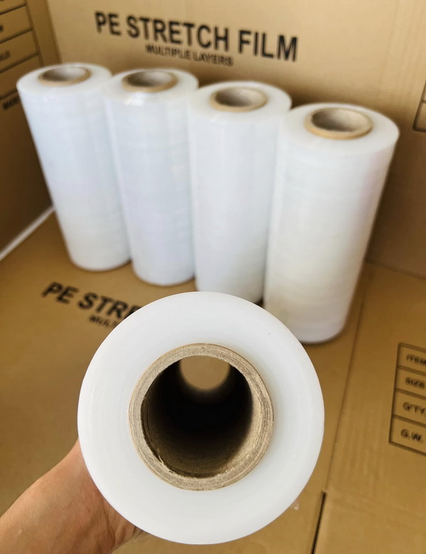 Màng PE quấn pallet: dùng trong kho vận, logistics, giúp cố định và bảo vệ hàng hóa khi vận chuyển.